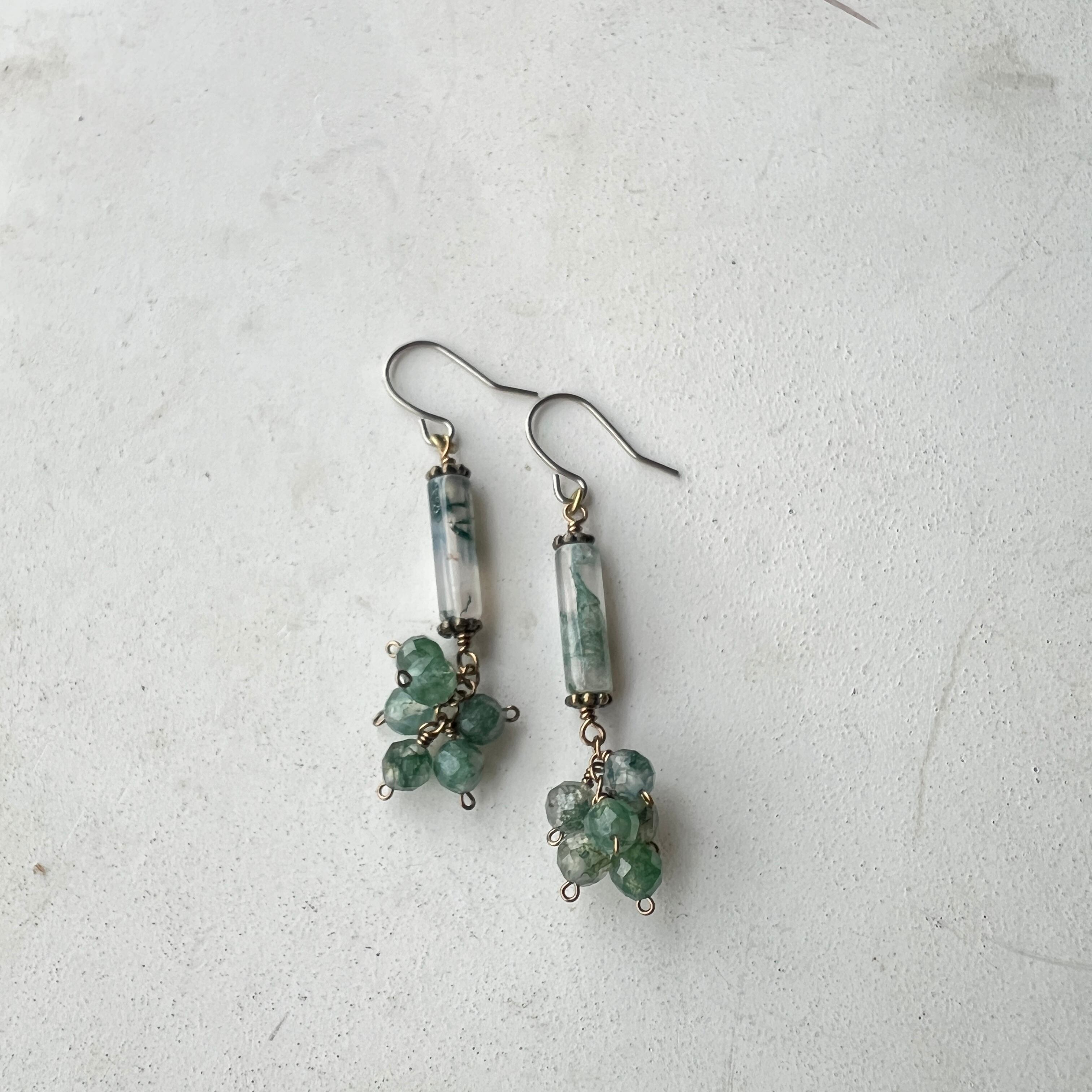 ガラス管の中の苔のようなモスアゲートの耳飾りです。