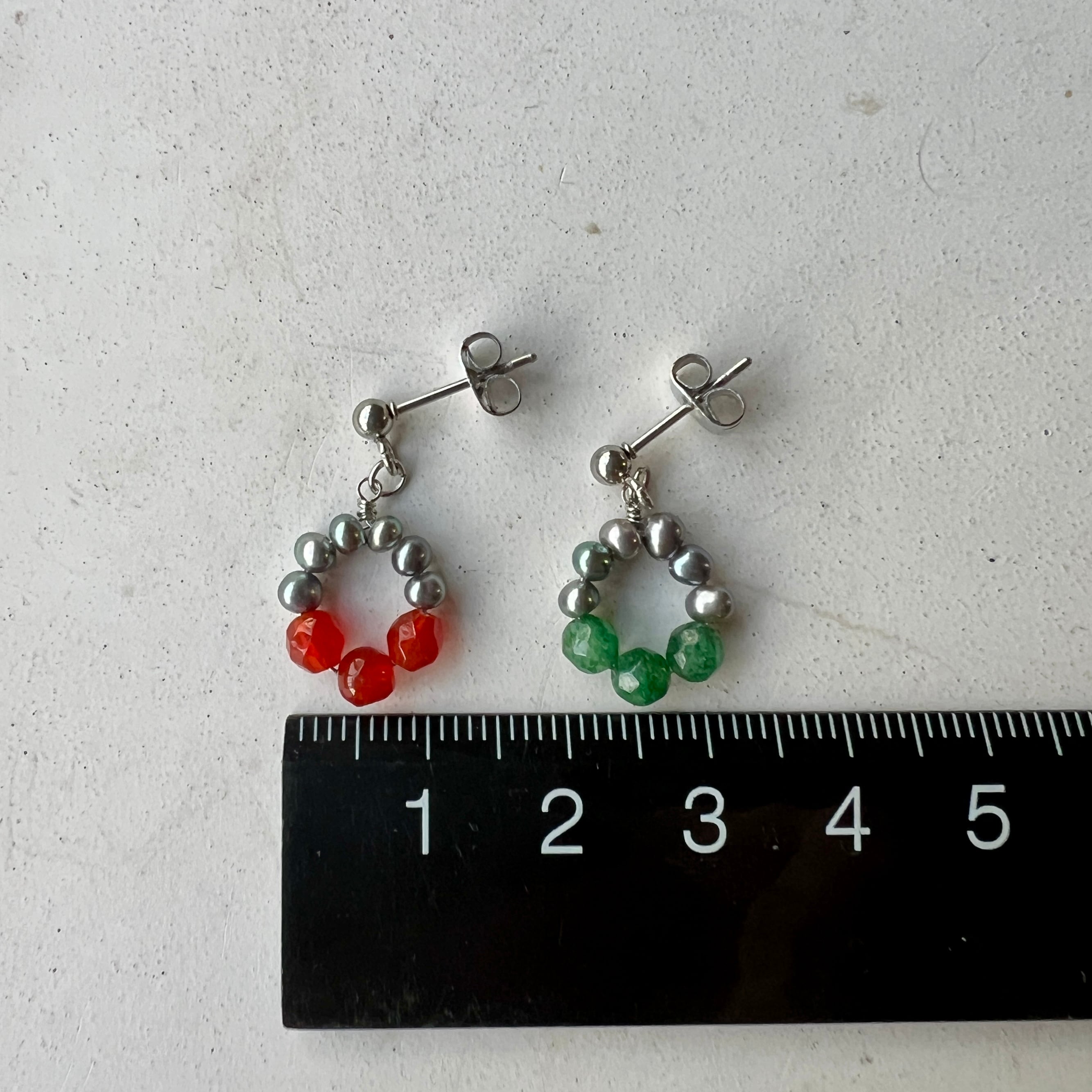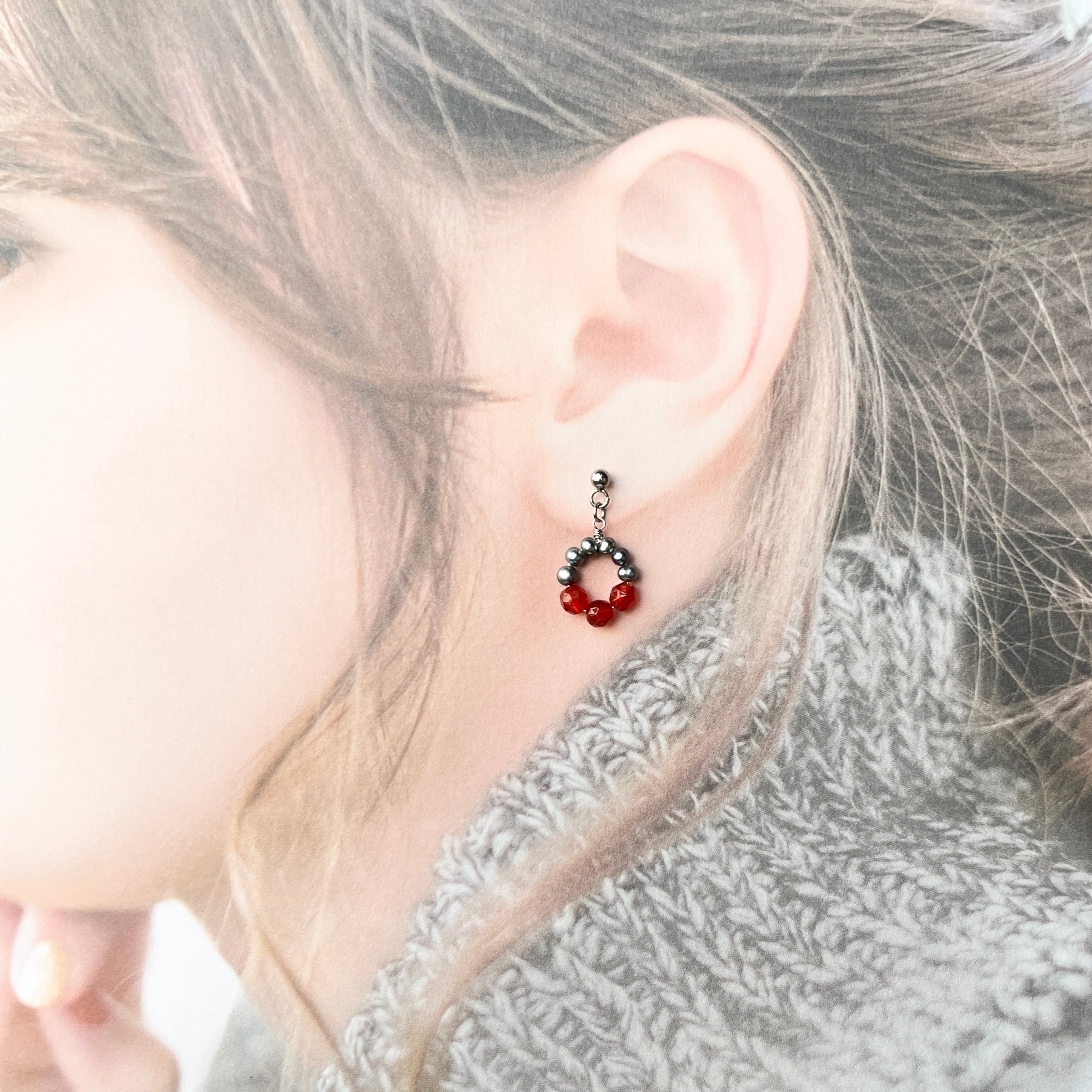 石たちを丸く並べて繋いだ耳飾り。小ぶりで普段使いにピッタリです。