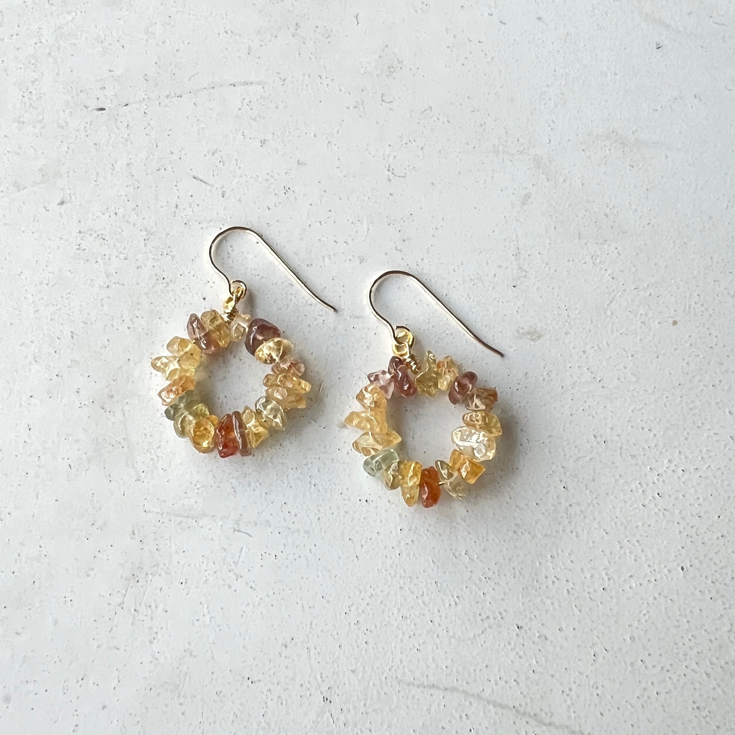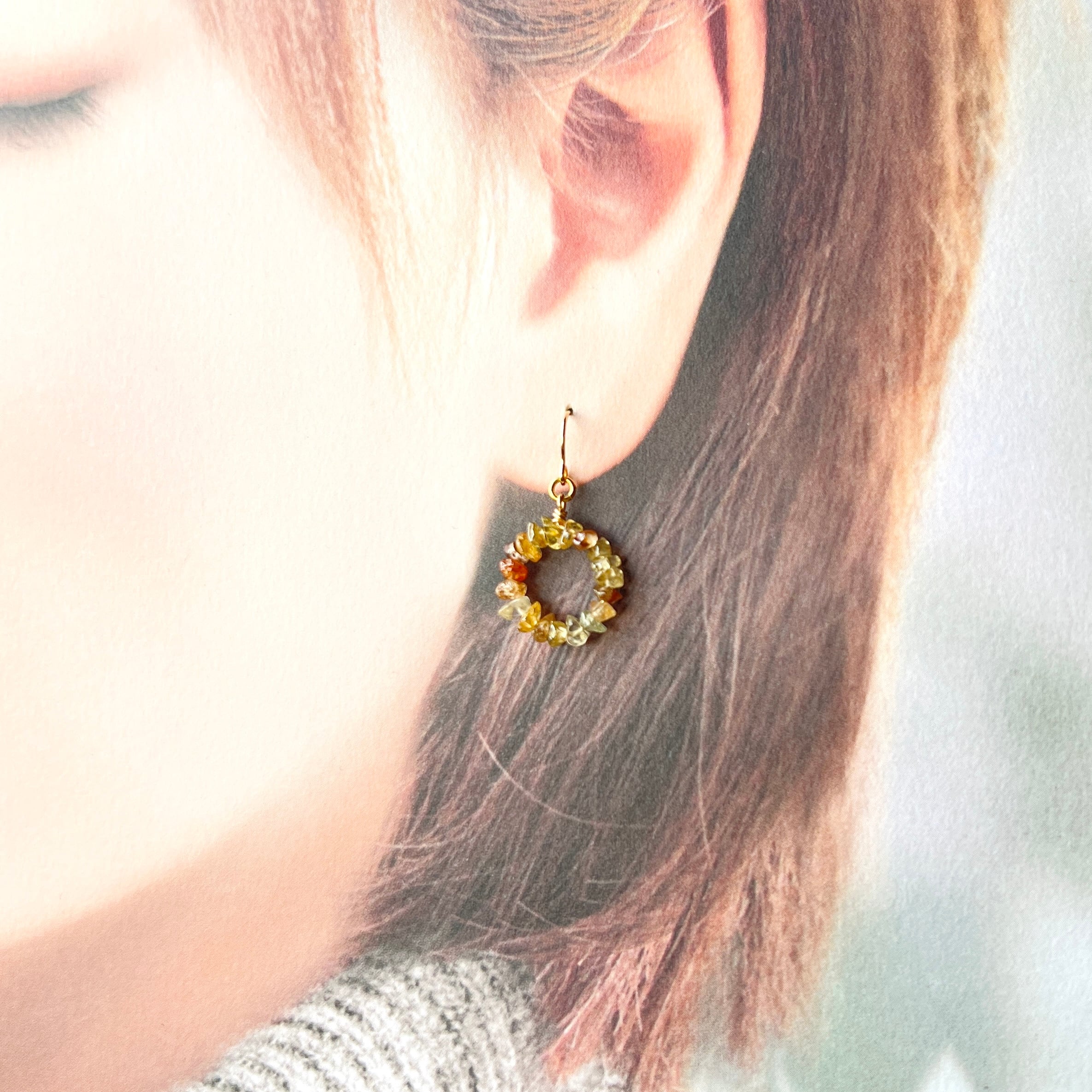 石たちを丸く並べて繋いだ耳飾り。小ぶりで普段使いにピッタリです。