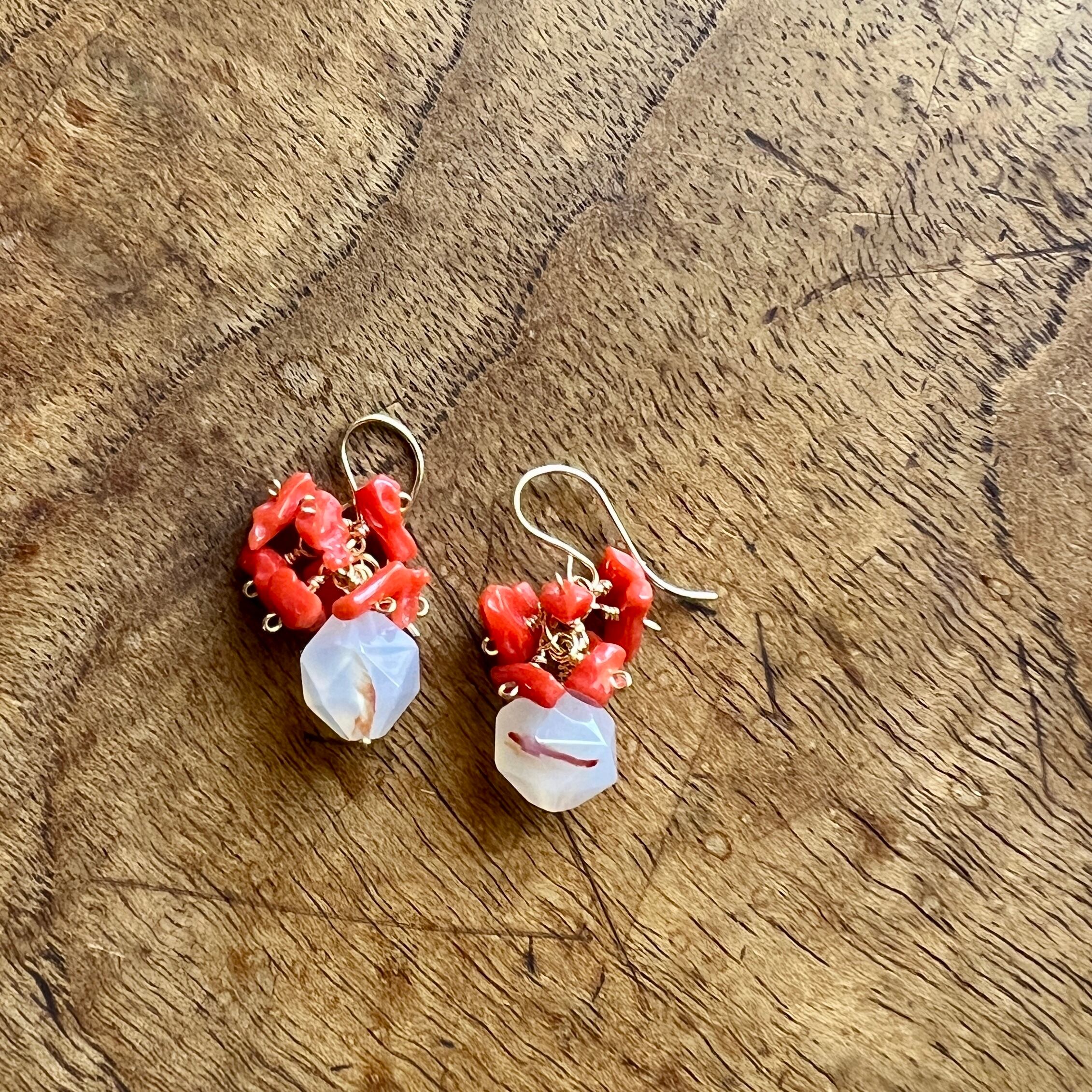 発色の良い珊瑚とシックなモンタナモスアゲートの組み合わせは