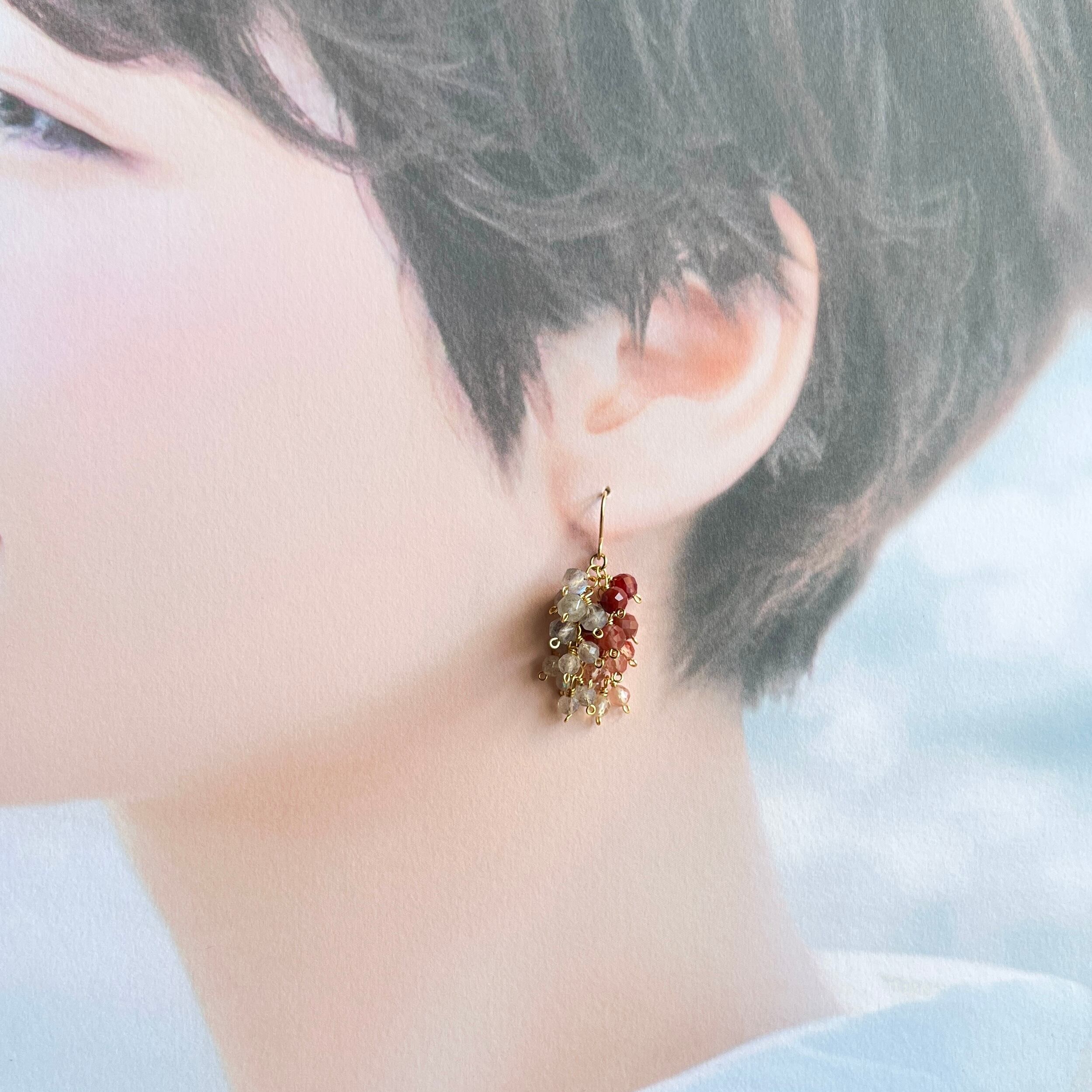 小粒の天然石をふさふさと繋いだ耳飾りです。